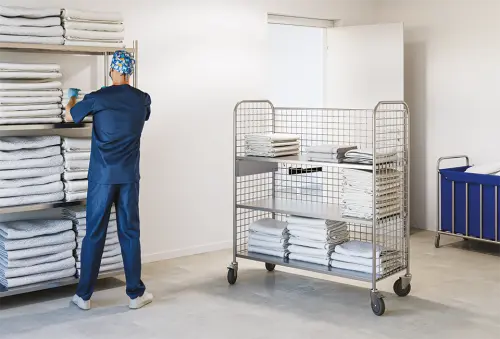 celonerezové transportní vozíky pro přepravu zdravotnického materiálu, prádla, pro gastronomii
