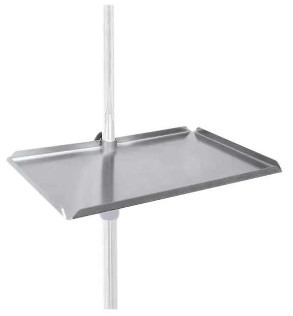 pojízdné výškově stavitelné infuzní stojany s přídavnými odkládacími poličkami, nerezové provedení