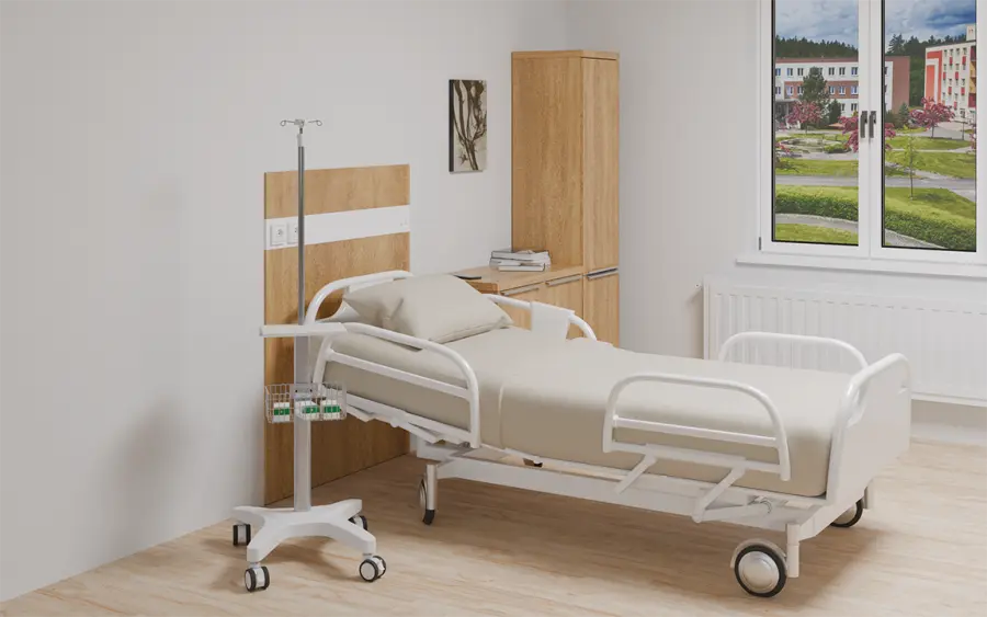 pojízdný výškově stavitelný infuzní stojan s odkládacím stolkem a košem