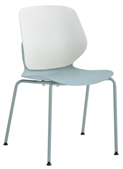 designová židle ROSA na první pohled zaujme svým elegantním propojením opěráku se sedací částí, kontrast mezi barevným sedákem sladěným s kovovými nohy a bílým jemně perforovaným opěrákem působí svěže, odlehčeně a dodá židli šmrnc