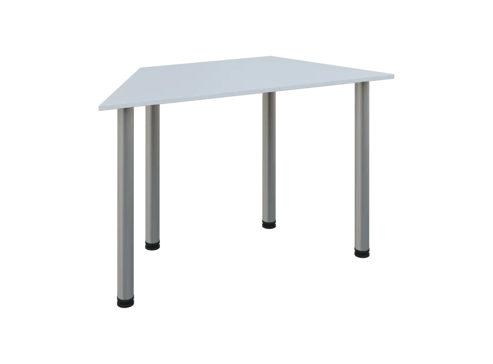 jednací stůl lichoběžníkový, 740x1200x600, nohy stříbrné, deska bílá