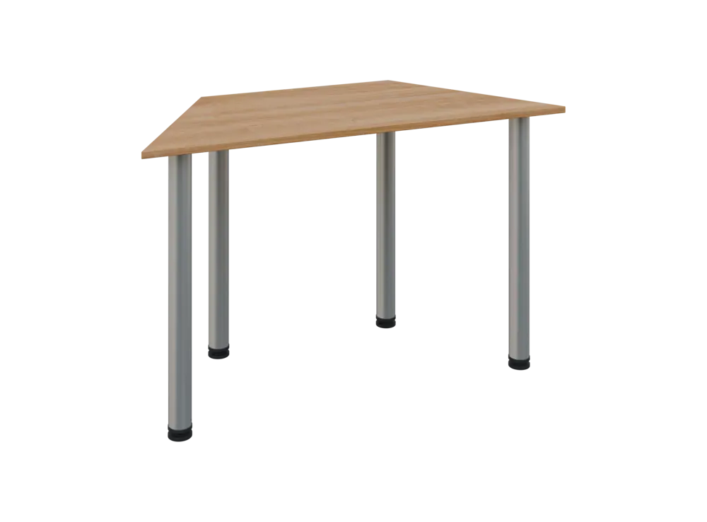 jednací stůl lichoběžníkový, 740x1200x600, nohy stříbrné, deska třešeň medová