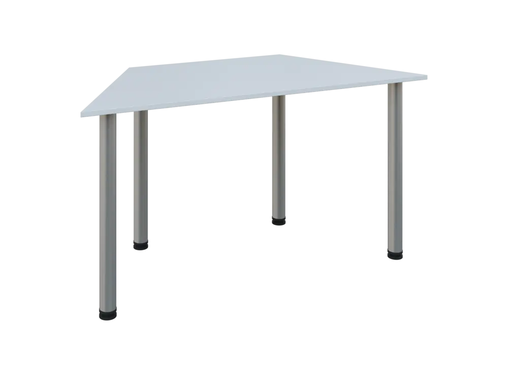 jednací stůl lichoběžníkový, 740x1400x700, nohy stříbrné, deska bílá