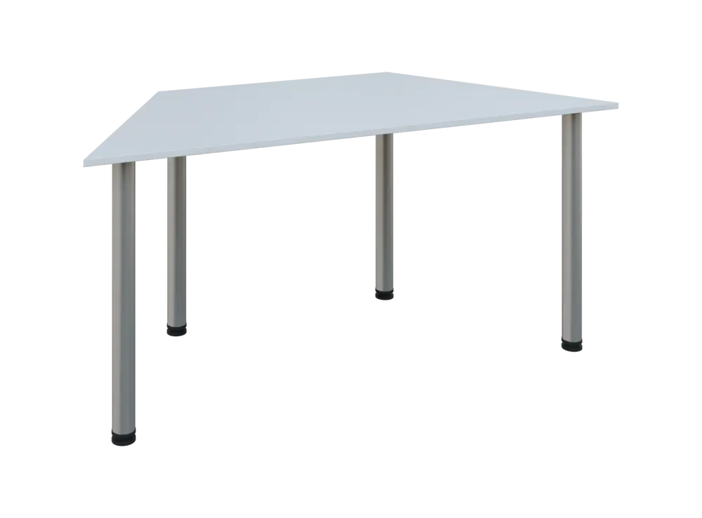 jednací stůl lichoběžníkový, 740x1600x800, nohy stříbrné, deska bílá