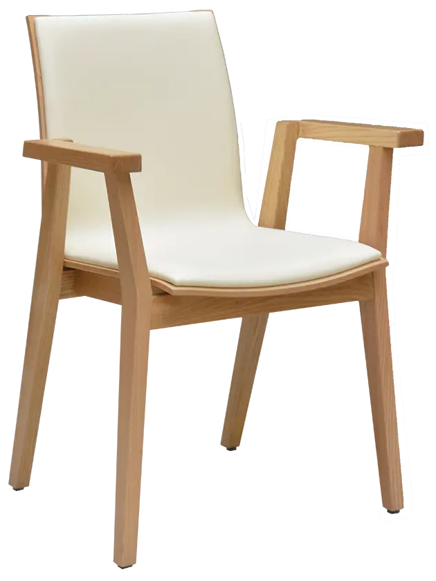 elegantní čistá linie v kombinaci s přírodním bukovým dřevem, tvarovaný sedák a opěrák z vrstvené překližky, masivní kostra opatřena transparentním lakem