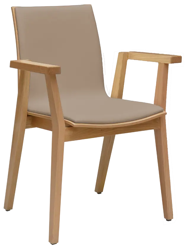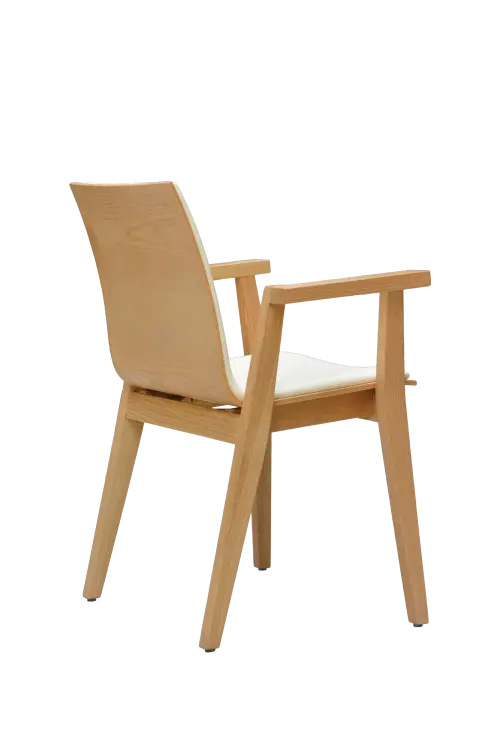 elegantní čistá linie v kombinaci s přírodním bukovým dřevem, tvarovaný sedák a opěrák z vrstvené překližky, masivní kostra opatřena transparentním lakem
