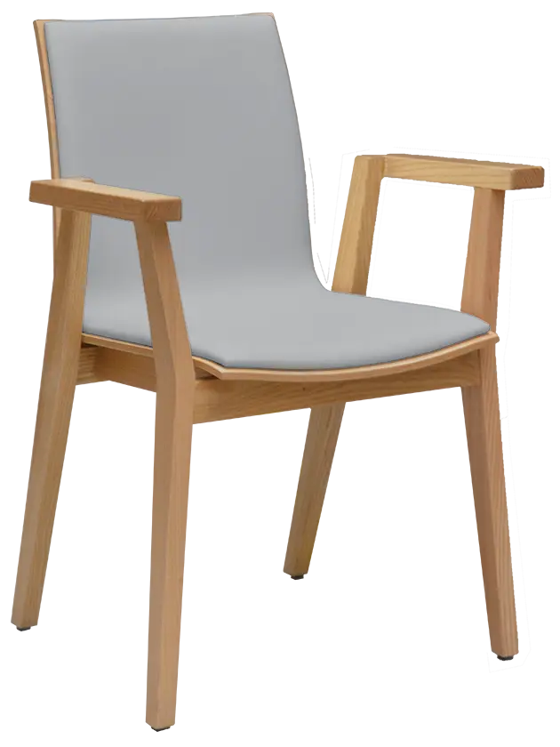 elegantní čistá linie v kombinaci s přírodním bukovým dřevem, tvarovaný sedák a opěrák z vrstvené překližky, masivní kostra opatřena transparentním lakem