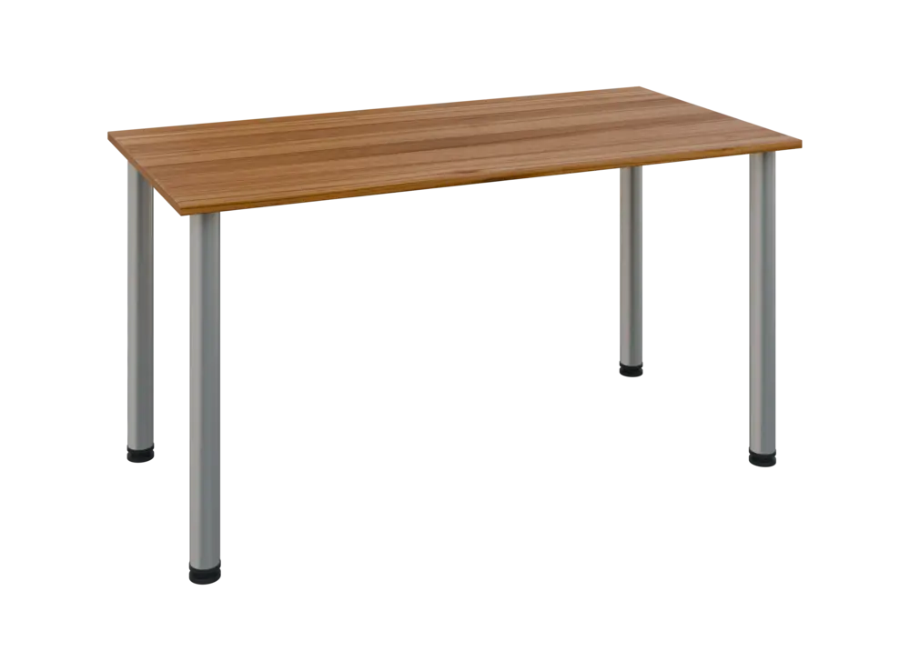 jednací stůl obdélníkový, 740x1400x700, nohy stříbrné, deska ořech světlý