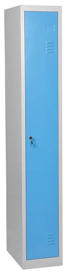 šatní skříně vyrobené z kvalitního ocelového plechu, větrací mřížky ve dveřích pro odvádění vlhkosti z oděvů, místo na jmenovku v horní části, tuhá konstrukce korpusu a speciální horizontální výstuhy ve dveřích