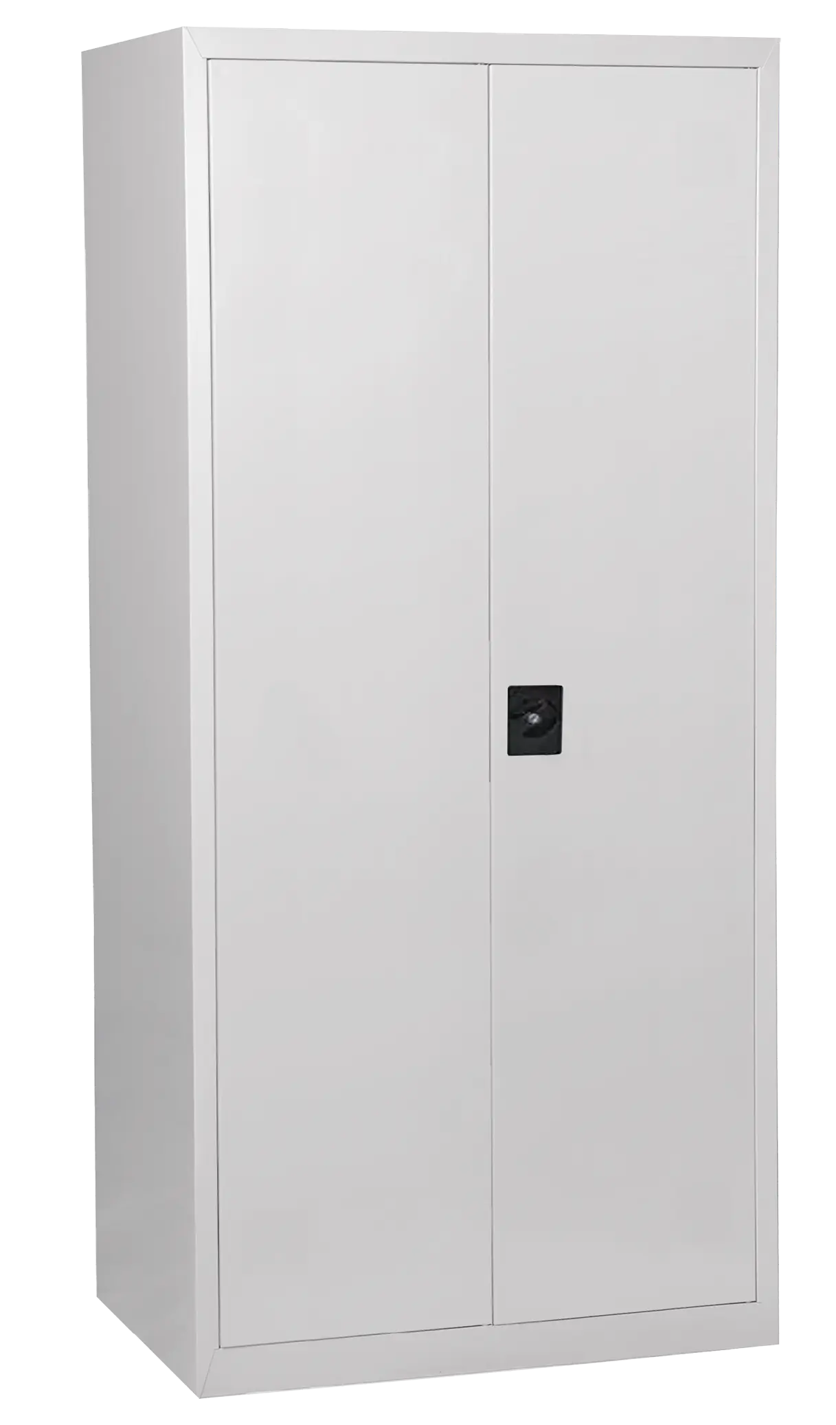 2-dveřová úklidová skříň s poličkami a vysokým oddílem, provedení na soklu
