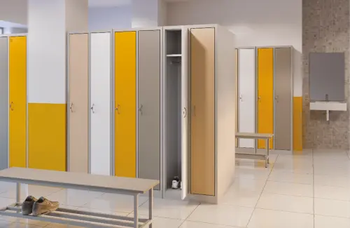 korpusy šatní skříně vyrobené z kvalitního ocelového plechu, dvířka šatní skříně vyrobené z lamina síly 18 mm, dvířka osazeny elegantní úchytkou