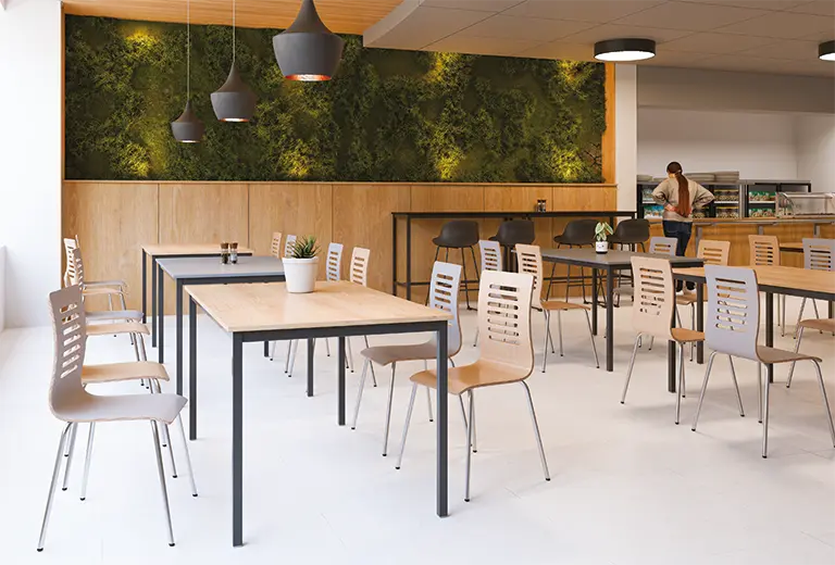 jídelní stoly s vysokou kvalitou zpracování, stabilní konstrukce ze čtyřhranných ocelových profilů