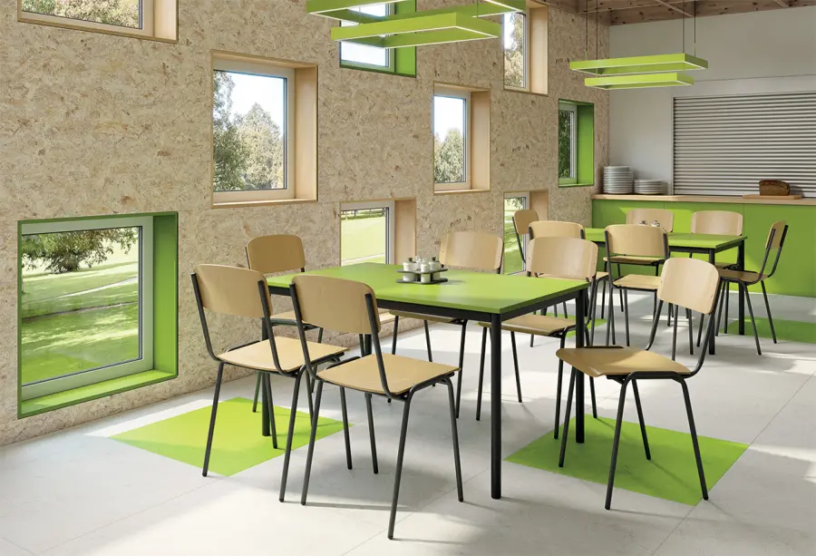 barevný jídelní stůl, 740x800x800 mm, deska šedá s hranou žlutá odio, podnož černá