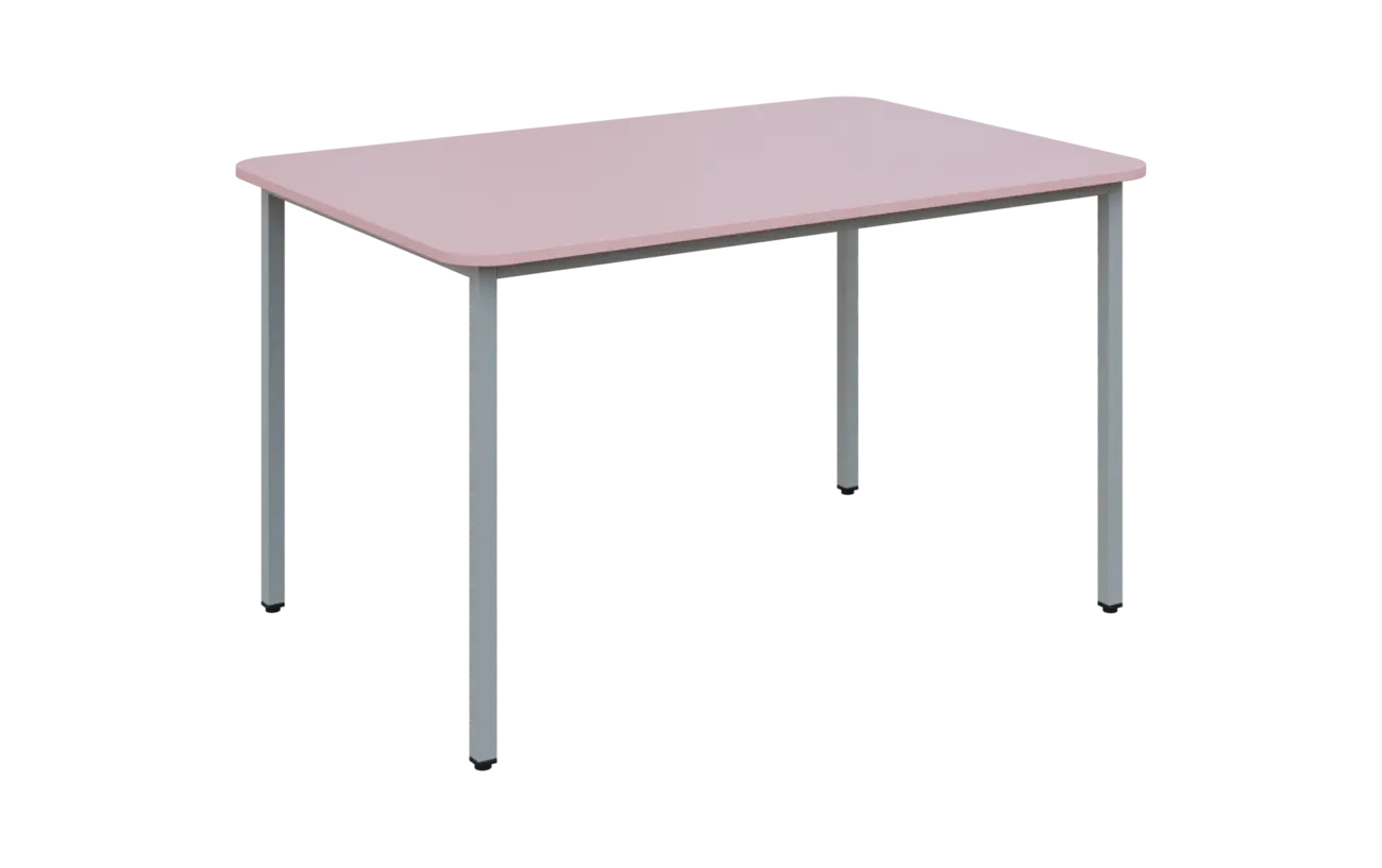 barevný oblý stůl, 740x1300x900 mm, deska pastelově růžová, podnož stříbrná