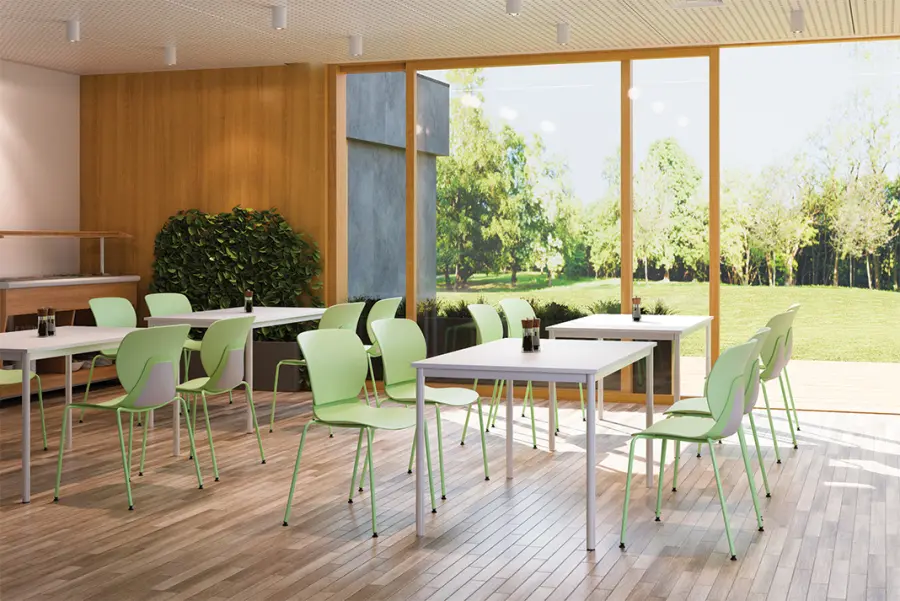 jídelní stůl, 740x800x800 mm, síla desky 18 mm, deska buk royal, podnož stříbrná