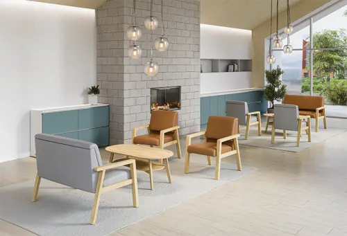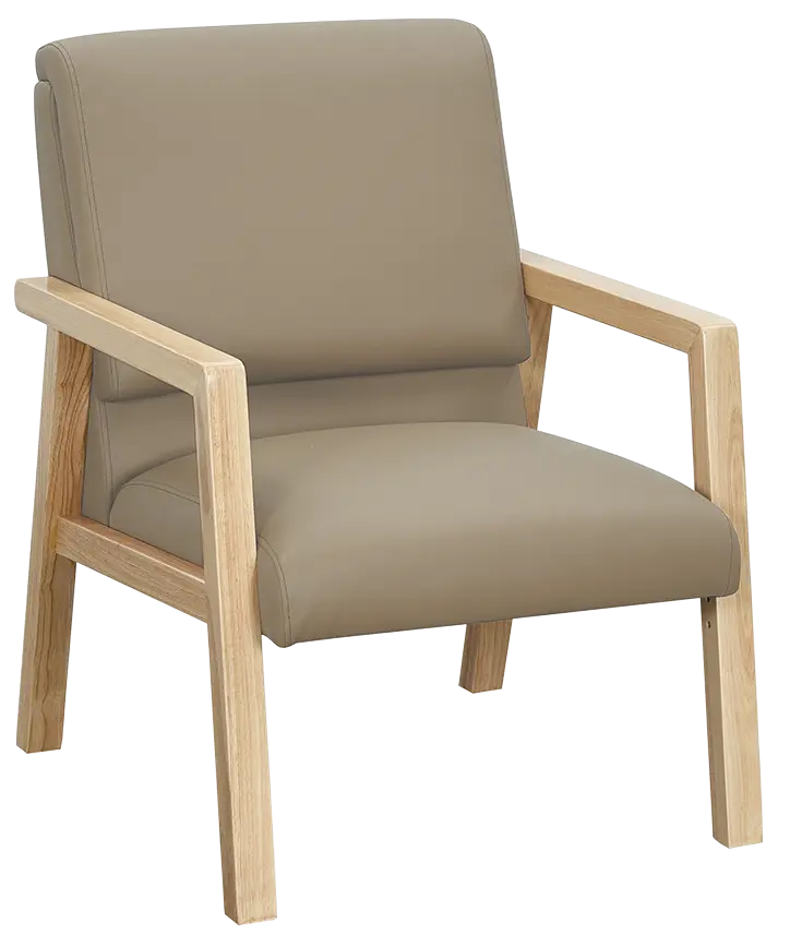 sedací souprava čalouněna kvalitní silikonovou kůží MEDI LM, která je vhodná do náročných zdravotnických a sociálních zařízení, kostra z masivního dřeva opatřena transparentním lakem