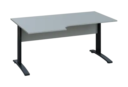 BRK 18 - 164 stůl pracovní, rohový, pravý, kovová podnož stříbrná, deska 18 mm, široký 1600 mm, šedá
