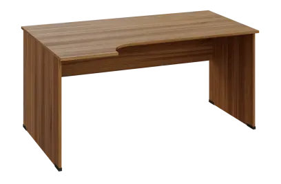 BRL 28 - 164 stůl pracovní, rohový, levý, dřevěná podnož, deska 25 mm, široký 1600 mm, ořech královský