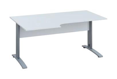 BRK 18 - 166 stůl pracovní, rohový, levý, kovová podnož stříbrná, deska 18 mm, široký 1600 mm, bílá