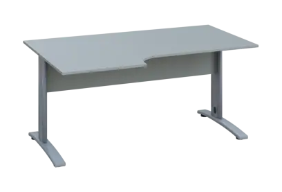 BRK 18 - 166 stůl pracovní, rohový, levý, kovová podnož stříbrná, deska 18 mm, široký 1600 mm, šedá