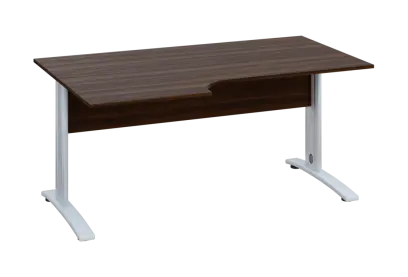 BRK 28 - 166 stůl pracovní, rohový, levý, kovová podnož bílá, deska 25 mm, široký 1600 mm, ořech královský