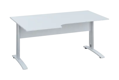 BRK 28 - 166 stůl pracovní, rohový, levý, kovová podnož bílá, deska 25 mm, široký 1600 mm, bílá