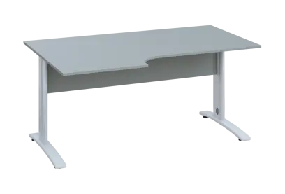 BRK 28 - 166 stůl pracovní, rohový, levý, kovová podnož bílá, deska 25 mm, široký 1600 mm, šedá