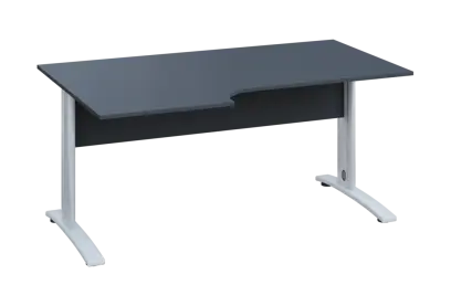 BRK 28 - 166 stůl pracovní, rohový, levý, kovová podnož bílá, deska 25 mm, široký 1600 mm, antracit