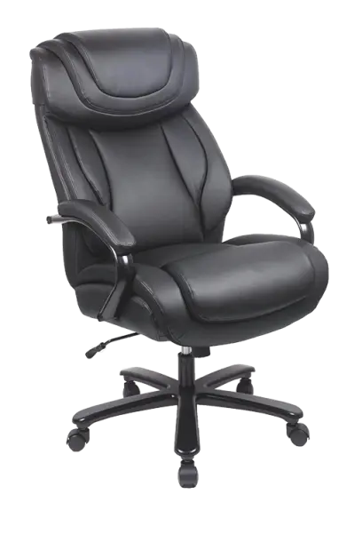 robustní a zároveň pohodlné křeslo čalouněné černou kůží, výškově nastavitelná opěrka hlavy, kovový kříž opatřený černým nástřikem pro zvýšenou zátěž s nosností až 180 kg