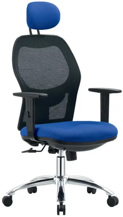 kancelářská židle s propracovanou ergonomií sedáku a opěráku, čalounění ve vysoce odolné látce, sychronní mechanika s možností aretace, chromovaný kříž s nosností 120 kg