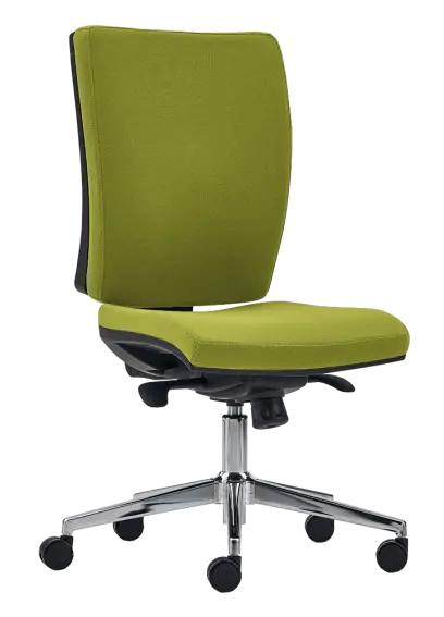 kancelářská židle s propracovanou ergonomií sedáku a opěráku, čalounění ve vysoce odolné látce, sychronní mechanika s možností aretace, chromovaný kříž s nosností 120 kg