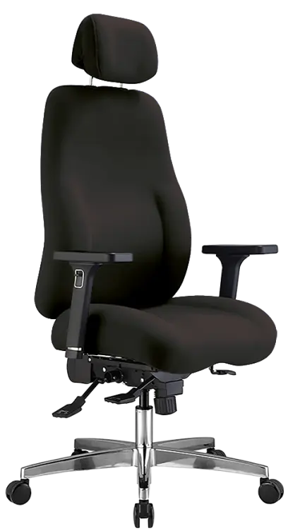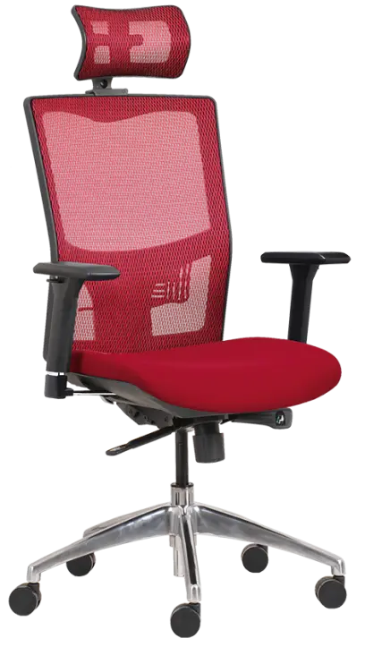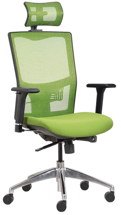 elegantní kancelářská židle s bohatou výbavou, sedák z tvarované pěny zpomalující hoření, čalouněný vysoce elastickou látkou, opěrák s opěrkou hlavy čalouněny samonosnousíťovinou té nejvyšší kvality