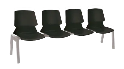 PRETTY 4, plastová lavice do čekárny, 4-sedák, černá, kostra stříbrná