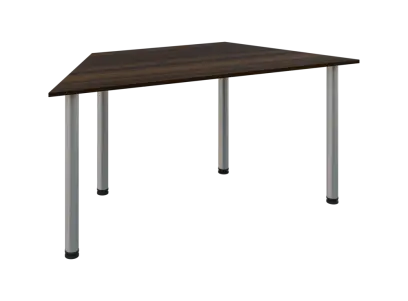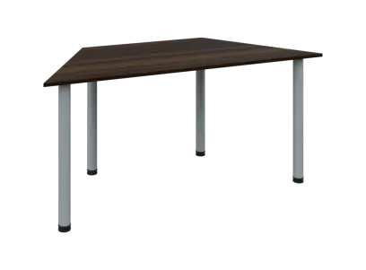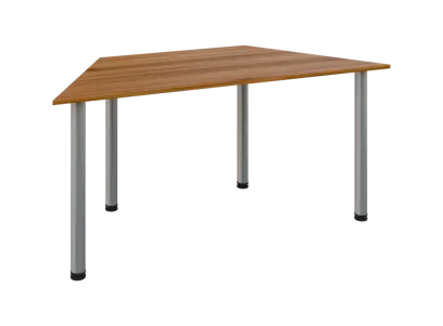 jednací stůl lichoběžníkový, 740x1600x800, nohy stříbrné, deska ořech královský