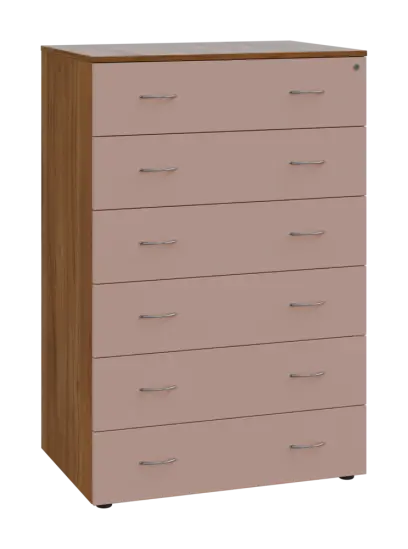 LKRP BIG - A5 dřevěná kartotéka, 6-zásuvková, centrální zámek, korpus ořech světlý/čílka pudrově růžová