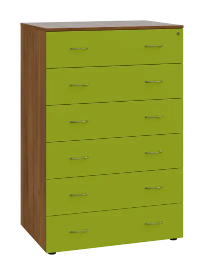 LKRP BIG - A5 dřevěná kartotéka, 6-zásuvková, centrální zámek, korpus ořech světlý/čílka jarní zeleň