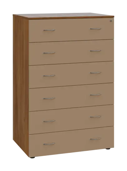 LKRP BIG - A5 dřevěná kartotéka, 6-zásuvková, centrální zámek, korpus ořech světlý/čílka mocca