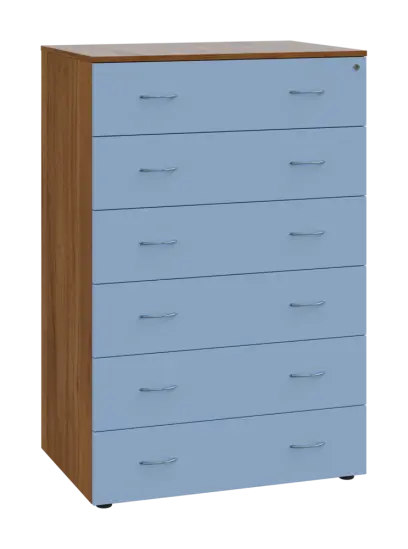 LKRP BIG - A5 dřevěná kartotéka, 6-zásuvková, centrální zámek, korpus ořech světlý/čílka pastelově modrá