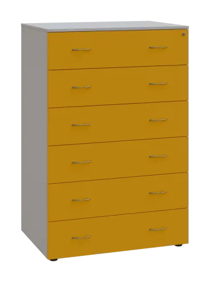 LKRP BIG - A5 dřevěná kartotéka, 6-zásuvková, centrální zámek, korpus šedý/čílka žlutá odio