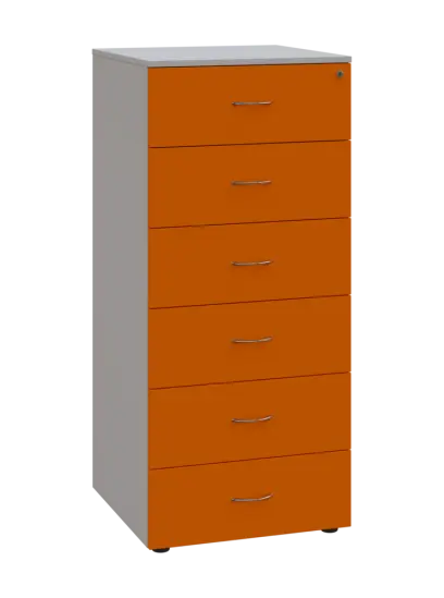 LKRP - A5 dřevěná kartotéka, 6-zásuvková, centrální zámek, korpus šedý/čílka mandarinka