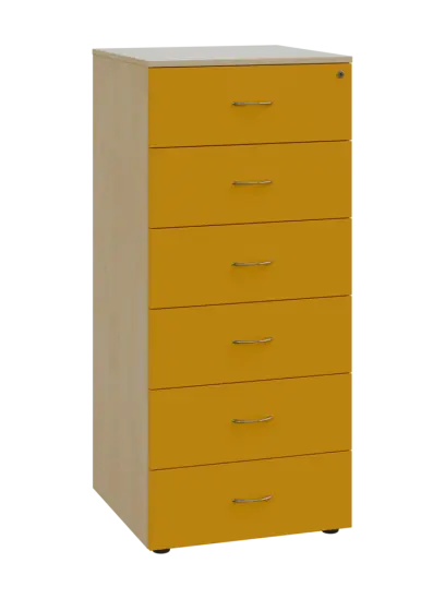 LKRP - A5 dřevěná kartotéka, 6-zásuvková, centrální zámek, korpus bříza světlá/čílka žlutá odio