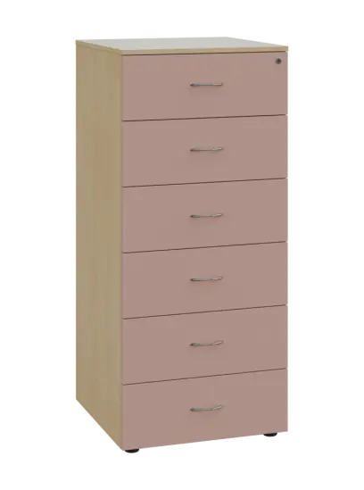 LKRP - A5 dřevěná kartotéka, 6-zásuvková, centrální zámek, korpus bříza světlá/čílka pastelově růžová