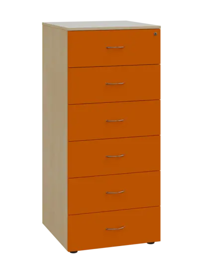 LKRP - A5 dřevěná kartotéka, 6-zásuvková, centrální zámek, korpus buk royal/čílka mandarinka