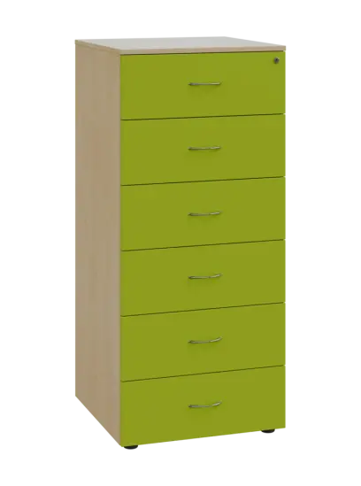 LKRP - A5 dřevěná kartotéka, 6-zásuvková, centrální zámek, korpus bříza světlá/čílka jarní zeleň