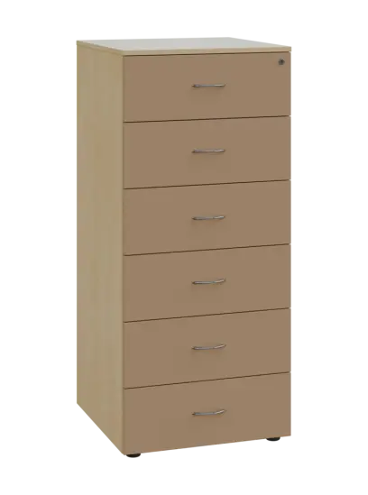 LKRP - A5 dřevěná kartotéka, 6-zásuvková, centrální zámek, korpus bříza světlá/čílka mocca