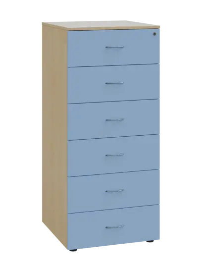 LKRP - A5 dřevěná kartotéka, 6-zásuvková, centrální zámek, korpus bříza světlá/čílka pastelově modrá