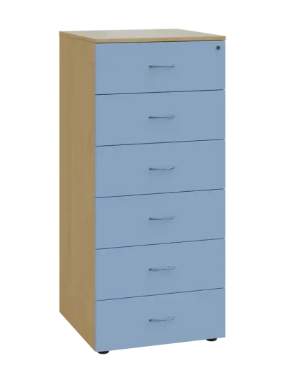 LKR - A5 dřevěná kartotéka, 6-zásuvková, centrální zámek, korpus javor horský/čílka pastelově modrá