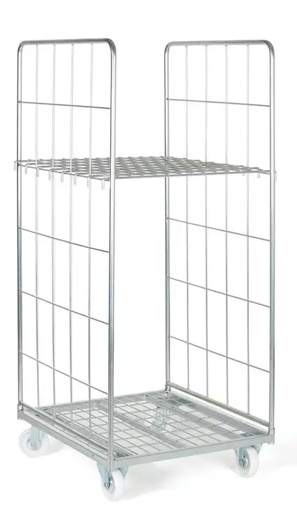 drátěné skládací vozíky vyrobeny ze žárově zinkové oceli stabilní kovový rám, nosnost ROLL kontejneru 500 kg, nosnost na 1 polici 100 kg