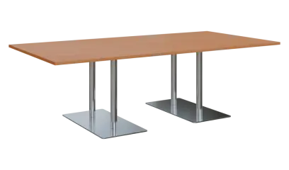 jednací stůl na dvojité centrální noze, trubková noha, obdélníková základna