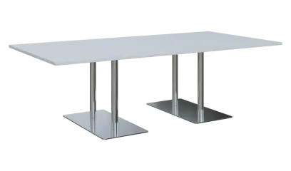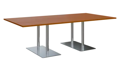 jednací stůl na dvojité centrální noze, trubková noha, obdélníková základna